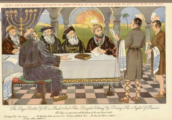 אחד הסיפורים המוכרים בהגדה של פסח הוא המעשה על גדולי הדור שהיו מסובין בבני ברק כדי לספר ביציאת מצרים כל הלילה ולמעשה חגגו את חג הפסח כפי שהוא נחגג מאז חורבן בית שני ועד היום.
